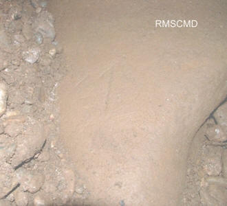 [Our photo of the same spot on the stone shows a mark that resembles the letter M, not an arrow, there is no arrow there.